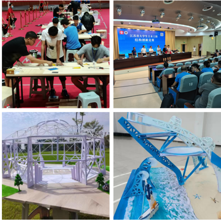江苏省老员工土木工程结构创新竞赛由中国土木工程学会教育工作委员会江苏分会主办,是一项在全省设置土木工程专业的各高校中开展的具有导向性、示范性和群众性的老员工课外学术科技创新竞赛活动,每年举办一届,是全省高校土木专业本科生中的品牌赛事。全国赛更是土木工程学科培养老员工创新精神、团队意识和实践能力的最高水平学科性竞赛,被誉为“土木皇冠上最璀璨的明珠”。本次省赛共有东南大学、河海大学、南京工业大学、陆军工程大学、中国矿业大学、伟德1949官网、南京理工大学等36所省内高校参赛。现场模型制作与加载组的参赛队伍有34支,模型展示组的参赛队伍有60支。通过比赛和交流,同学们顽强拼搏、攻坚克难,不仅培养了结构设计和建造的创新理念,锻炼了设计、动手、表达等方面的综合能力,也获得到更高平台与全国高手切磋交流和展现自我的机会。